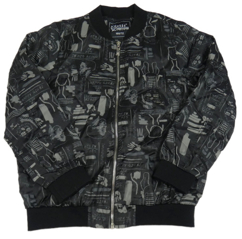 Černo-šedý šusťákový podšitý bomber s obrázky