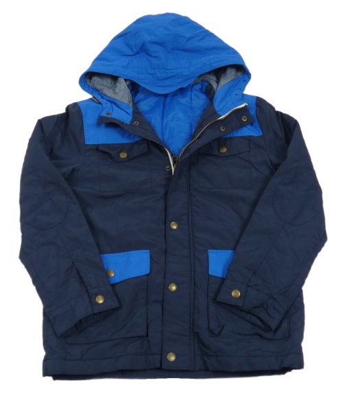 Tmavomodro-modrá šusťáková zateplená bunda s kapucí George