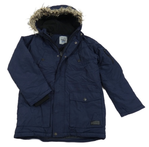 Tmavomodrá šusťáková zimní bunda s kapucí s kožešinou Yigga
