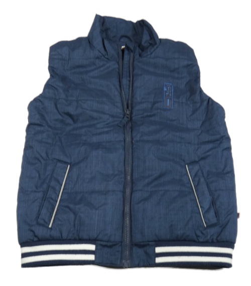 Tmavomodrá melírovaná šusťáková zateplená vesta s nášivkou Lego