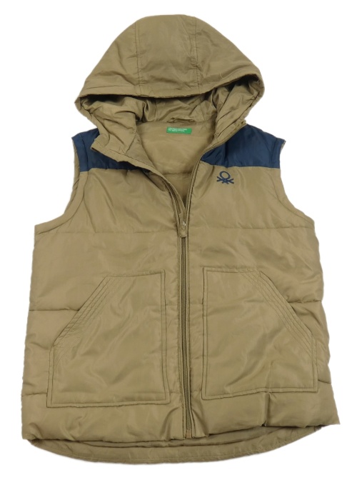 Béžovo-tmavomodrá šusťáková zateplená vesta s kapucí Benetton