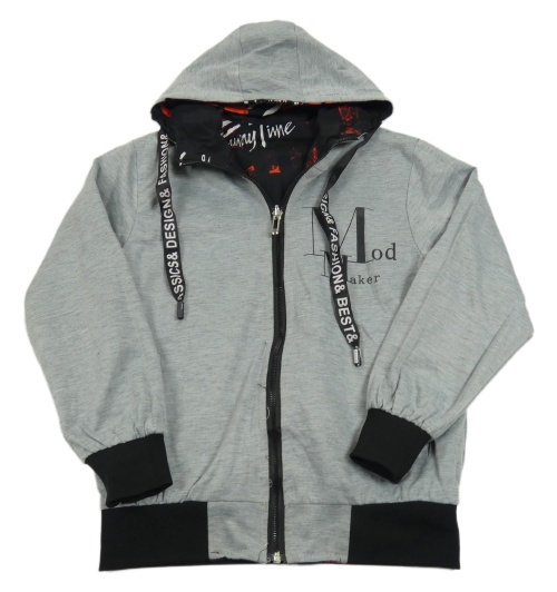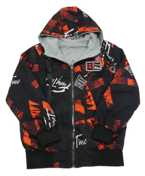 Černo-červený šusťákový jarní oboustranný bomber s nápisy a nášivkou a kapucí