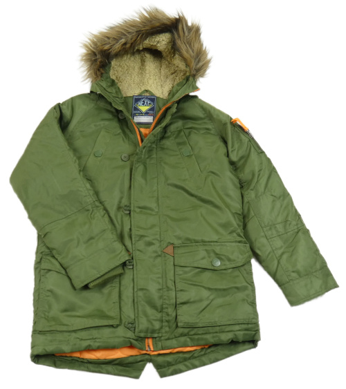 Khaki šusťáková zimní parka s kapucí s kožešinou Next