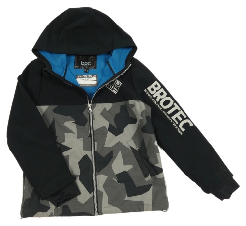 Černo-vzorovaná softshellová bunda s potiskem a kapucí bpc