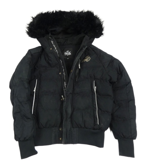 Černá šusťáková zimní bunda s písmeny a kapucí