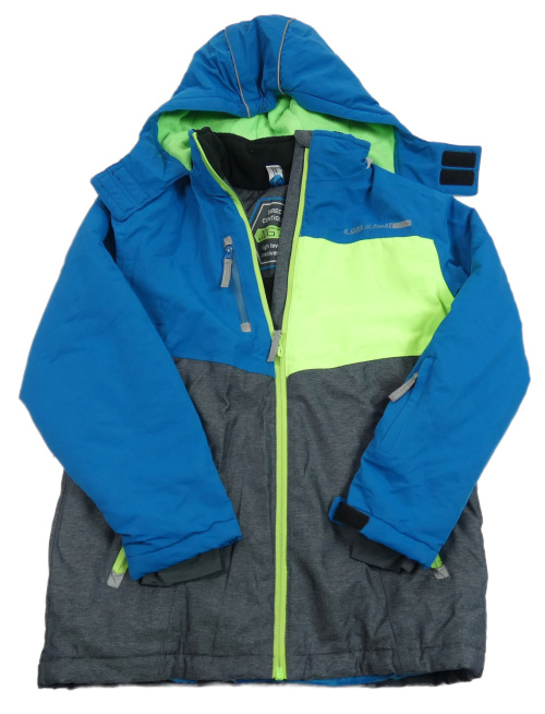 Petrolejovo-limetkovo-tmavošedá šusťáková zimní lyžařská bunda s kapucí YIGGA