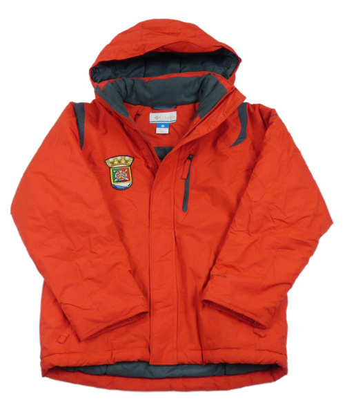 Červená šusťáková funkční zimní bunda s výšivkou a kapucí Columbia