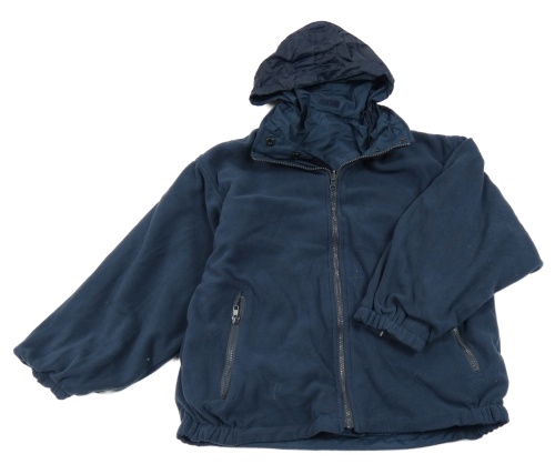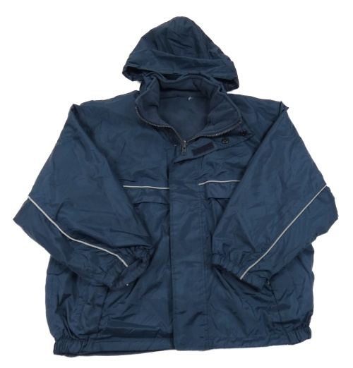 Tmavomodrá šusťáková lehce zateplená oboustranná bunda s kapucí