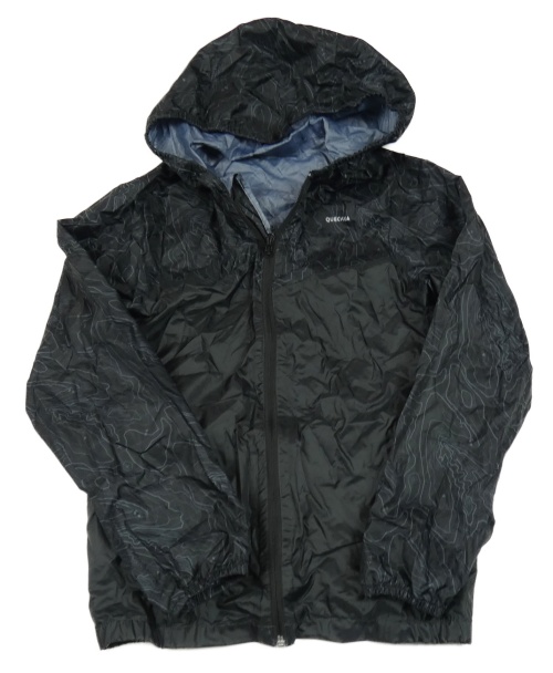 Černá šusťáková nepromokavá funkční bunda se vzorem a kapucí Quechua