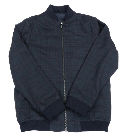 Tmavomodro-červená kostkovaná plátěná jarní bunda