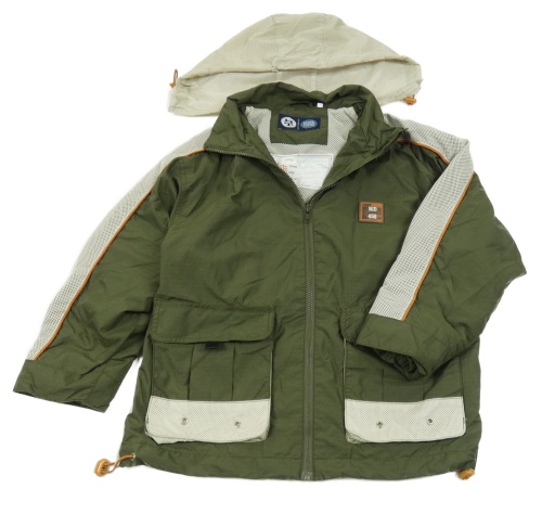 • Tmavokhaki-světlebéžová kostkovaná šusťáková jarní bunda s nášivkou a síťovinou a ukrývací kapucí C&A