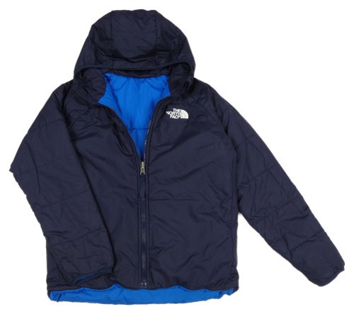 Modro-tmavmomodrá funkční šusťáková zimní oboustranná bunda s kapucí The North Face
