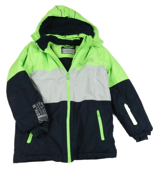 Zelenkavo-bílo-tmavomodrá lyžařská bunda s kapucí Dopodopo
