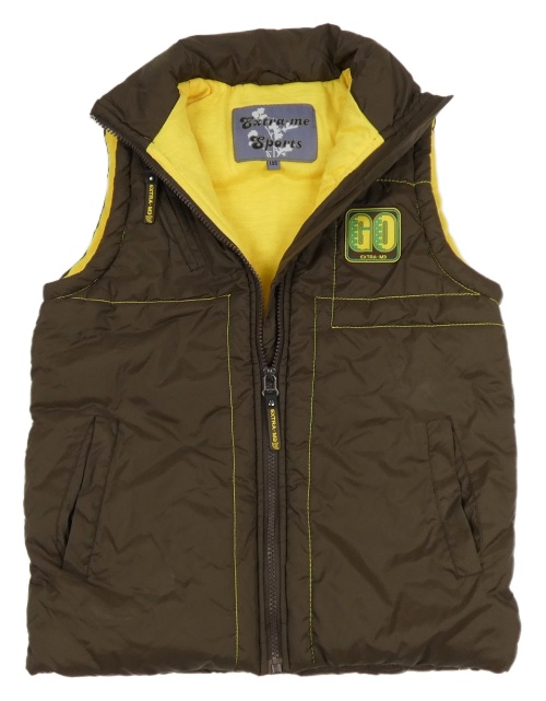 Hnědá šusťáková zateplená vesta s nášivkou