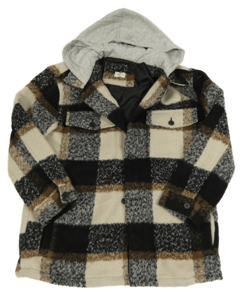 Béžovo-černo-hnědá kostkovaná košilová bunda s teplákovu kapucí F&F