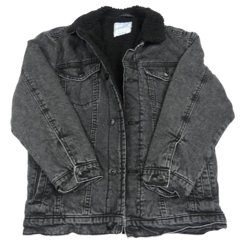 Tmavošedá riflová zateplená bunda s huňatým límcem Primark