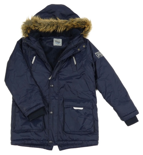 Tmavomodrá šusťáková zimní bunda s kapucí s kožešinou Yigga