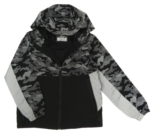 Černo-šedá vzorovaná šusťáková jarní bunda s kapucí George