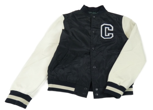 Tmavomodro-smetanový šusťákovo/koženkový zateplený bomber s písmenkem PRIMARK