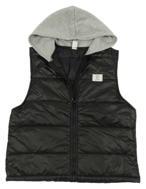 Černá šusťáková zateplená vesta s nášivkou a teplákovou kapucí Shein