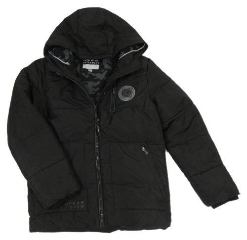 Černá šusťáková zimní bunda s nášivkou a kapucí F&F