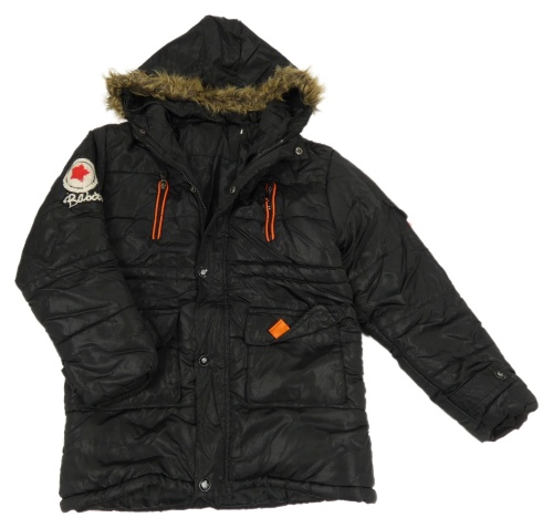 Černá šusťáková zimní bunda s kapucí s kožešinou