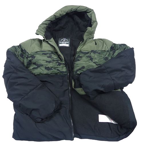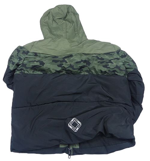 Khaki-černá šusťáková zimní bunda s army prvky a kapucí George