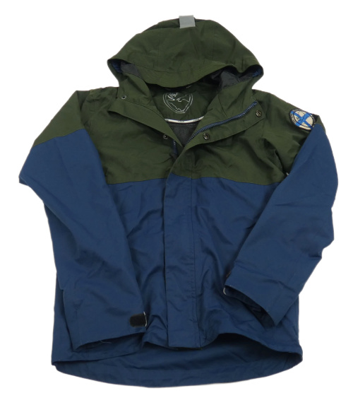 Khaki-tmavomodrá šusťáková podzimní funkční bunda s kapucí