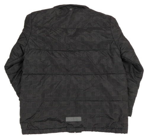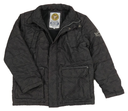 Hnědo-černá kostkovaná šusťáková zateplená bunda s nápisem