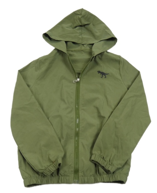 Khaki šusťáková bunda s dinosaurem a kapucí Shein