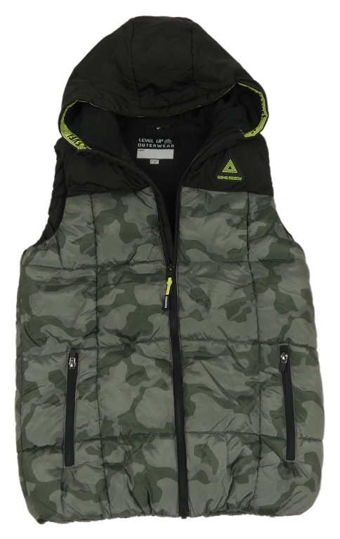 Černo-army šusťáková zateplená vesta s nášivkou a kapucí F&F