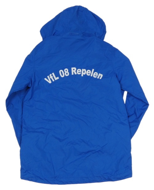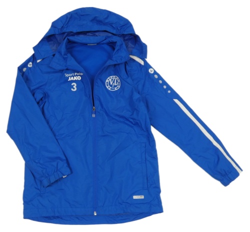 Tmavomodrá šusťáková jarní bunda s výšivkou a kapucí Jako