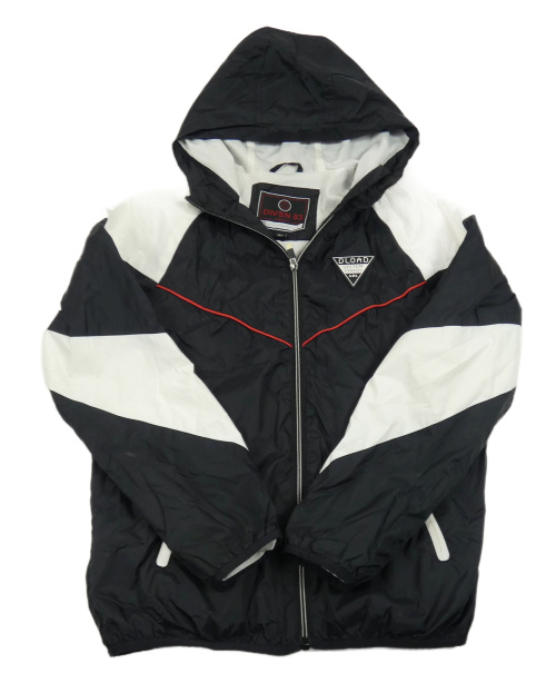 Černo-bílá šusťáková jarní bunda s nášivkou a kapucí C&A
