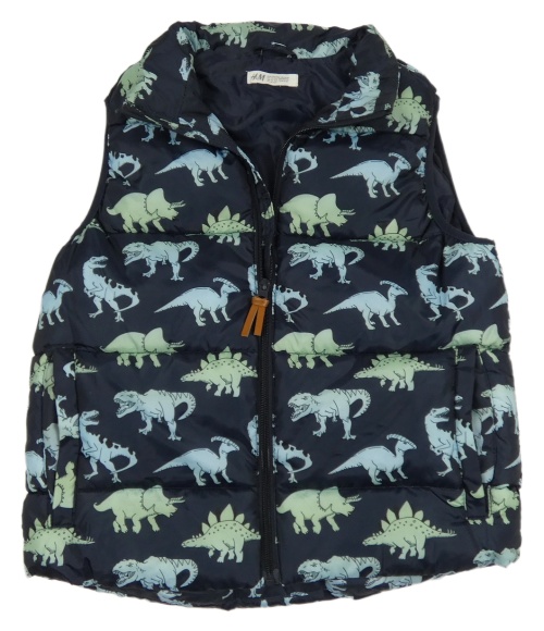 Tmavomodrá prošívaná šusťáková zateplená vesta s dinosaury H&M
