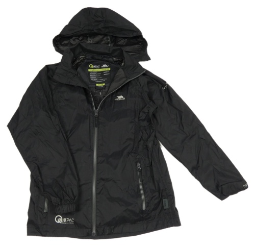 Černá funkční šusťáková nepromokavá bunda s ukrývací kapucí Trespass