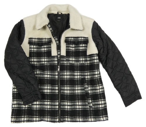 Černo-bílá vlněno/šusťáková zimní bunda River Island