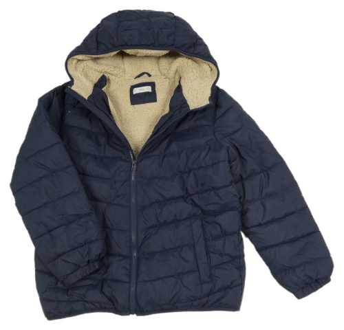 Tmavomodrá šusťáková prošívaná zateplená bunda s kapucí Mango
