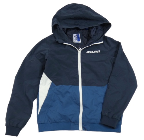 Tmavomodro-bílá šusťáková jarní bunda s kapucí Jack & Jones