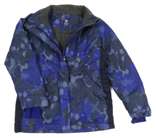 Černo-modrá puntíkatá šusťáková zimní bunda se skvrnami H&M