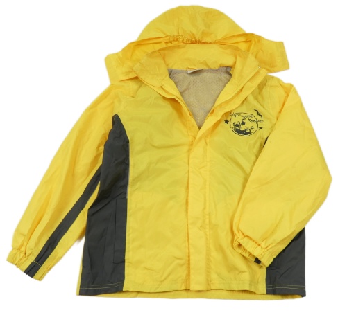 Žluto-šedá šusťáková jarní bunda s nápisem a kapucí