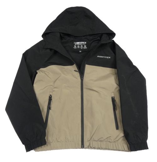 Černo-béžovošedá šusťáková funkční jarní bunda s logem a kapucí Raintex