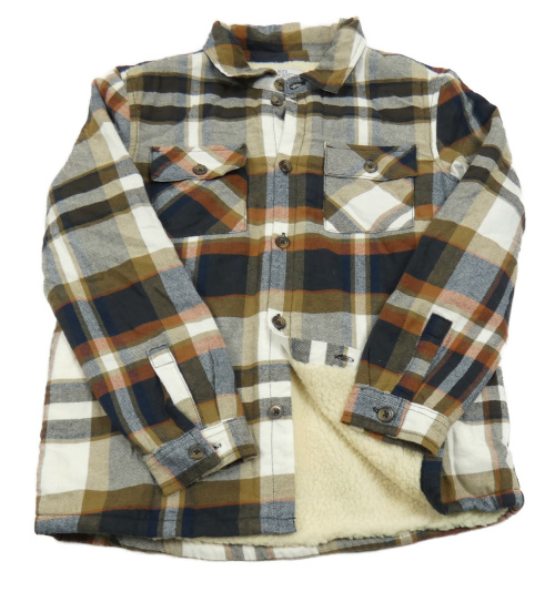 Béžovo-tmavomodrá kostkovaná zateplená košilová bunda Matalan