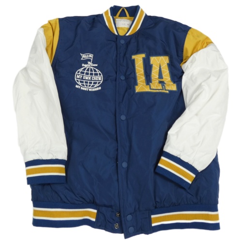 Tmavomodro-žluto-bílý šusťákový zateplený bomber s písmeny Zara