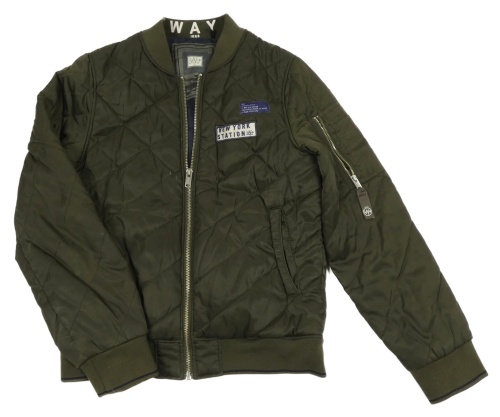 Khaki prošívaná šusťáková zateplená bunda s nášivkami