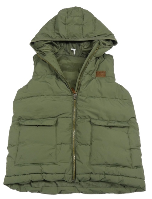 Khaki šusťáková zatepená vesta s nášivkou a kapucí Yigga