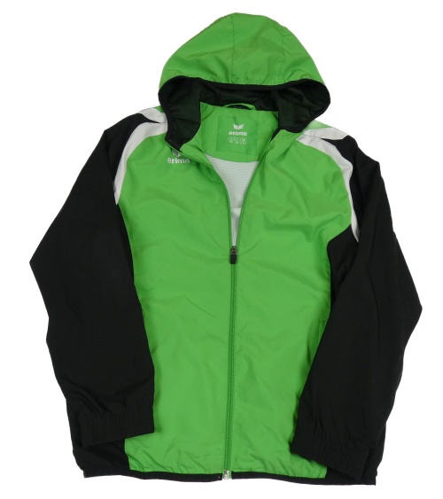 Zeleno-černo-bílá šusťáková sportovní bunda s logem a kapucí erima