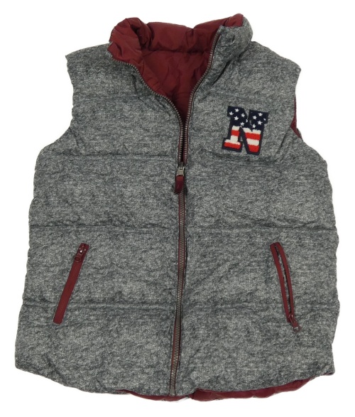 Vínová šusťáková zateplená oboustranná vesta s číslem