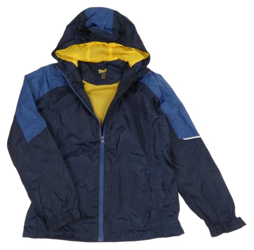 Tmavomodro-modrá šusťáková nepromokavá funkční jarní bunda s kapucí + sáček crivit
