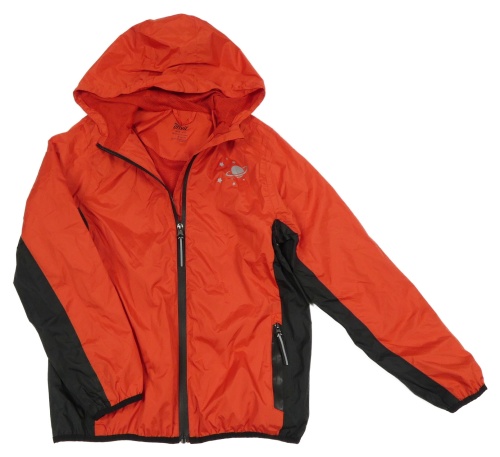 Červeno-černá šusťáková funkční jarní bunda s planetou a kapucí crivit