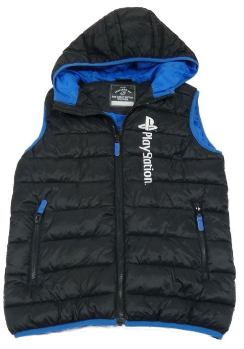 Černá šusťáková prošívaná zateplená vesta s kapucí - PlayStation